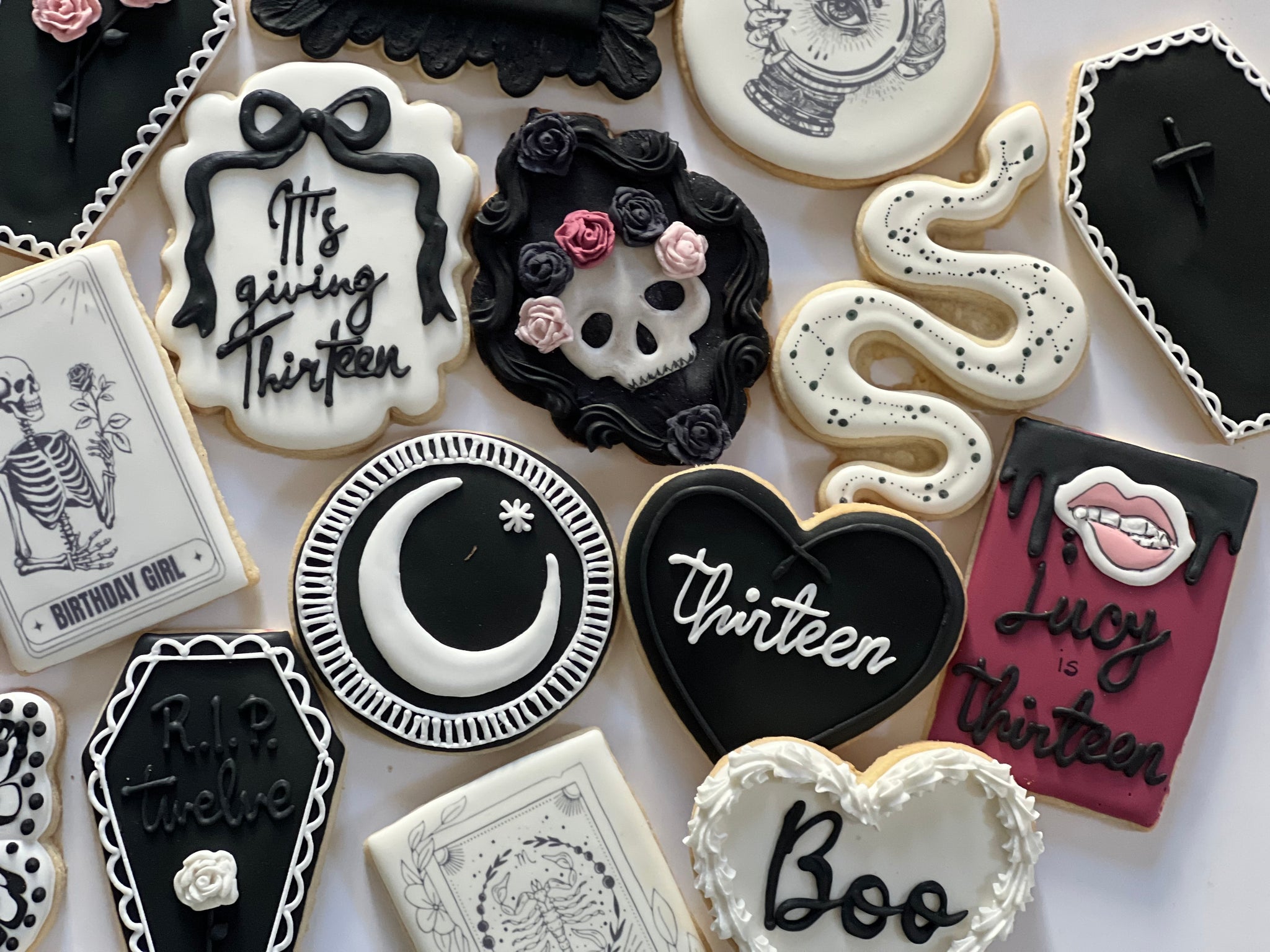 *This listing is for one dozen (12) Halloween theme sugar cookies. Designs will be random cookies unless you specify what design would you like to receive !!!